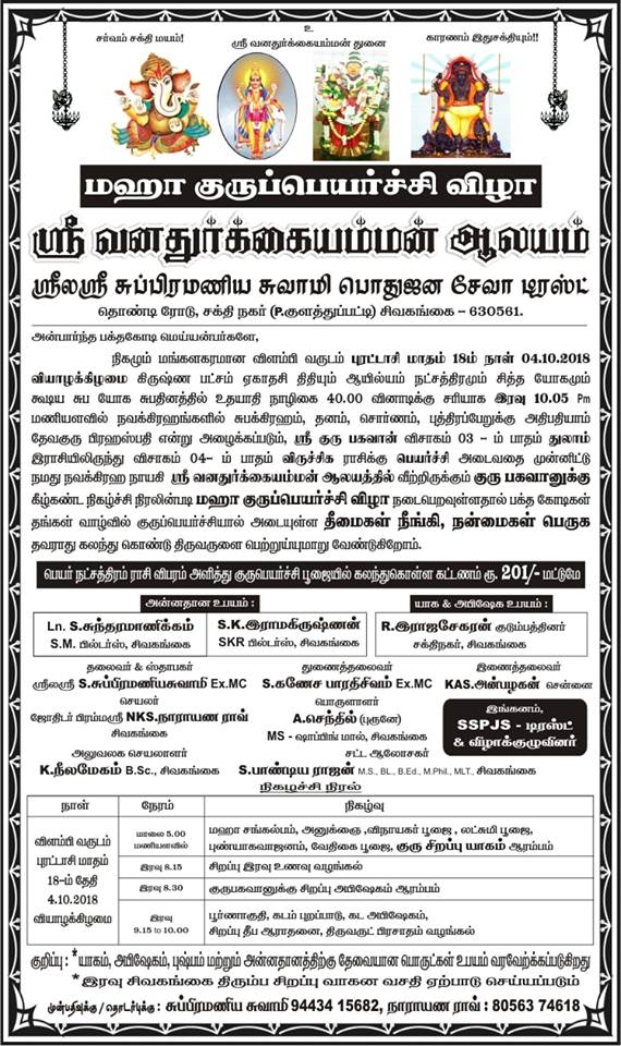 குருப்பெயர்ச்சி மற்றும் சனிப்பெயர்ச்சி குருப்பெயர்ச்சி மற்றும் சனிப்பெயர்ச்சி போன்ற நிகழ்வுகளில் சிறப்பு பூஜை மற்றும் சிறப்பு வழிபாடு செய்யப்படுகிறது.